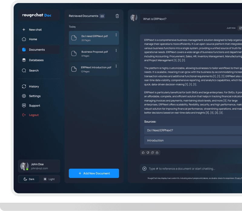 Metarouge can transform your organisation's knowledge management with Rougechat Doc, a powerful AI powered workplace search engine and chat assistant. Rougechat Doc helps your team find information quickly and efficiently from bundles of documents within a fraction of a second, enhancing productivity and collaboration.